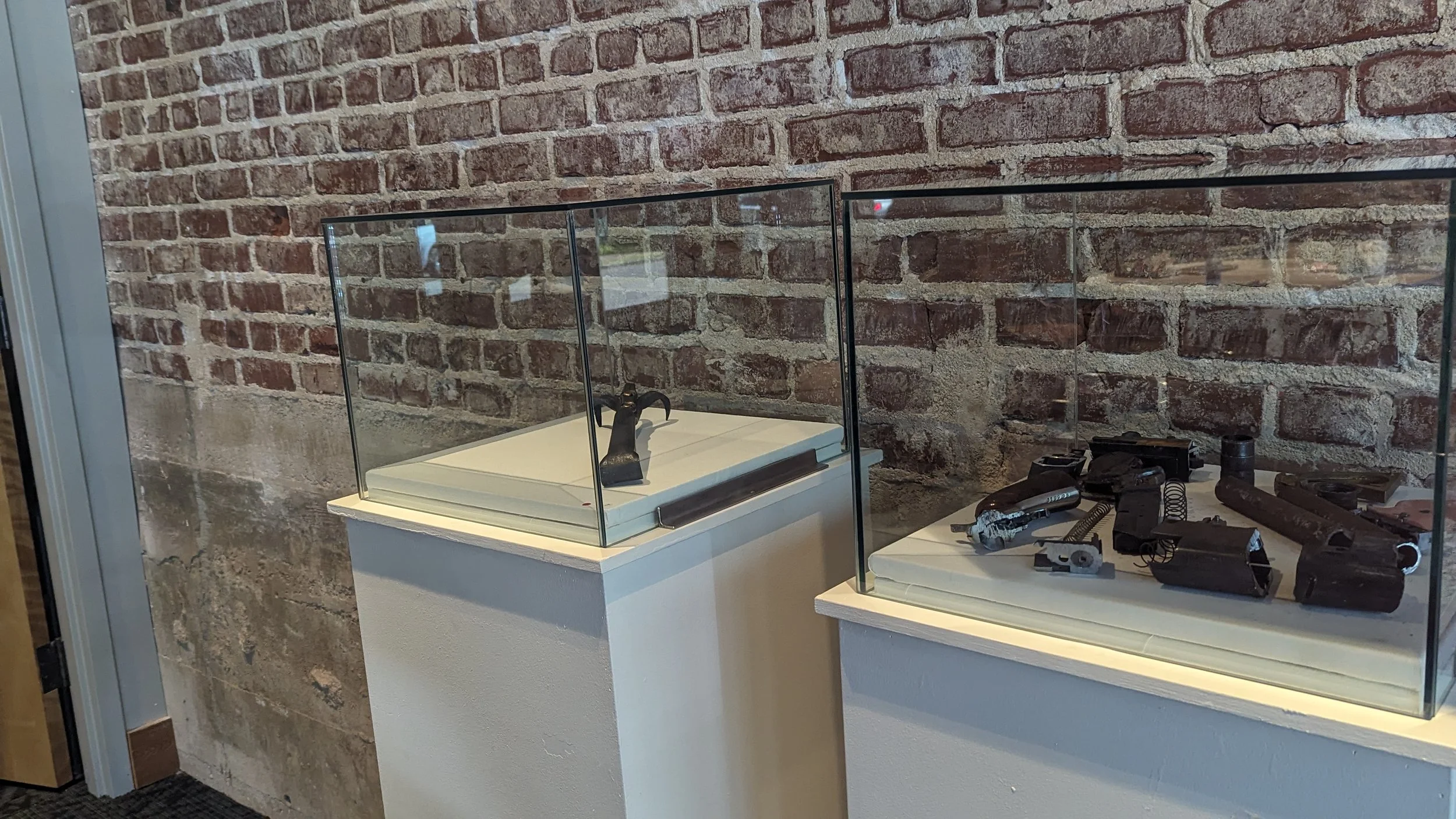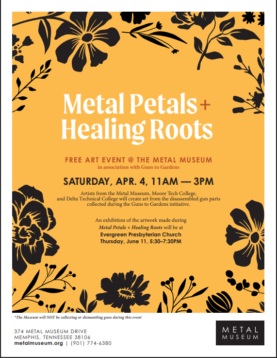 Below you’ll find some of the pieces created by metal artists at the Memphis Metal Museum using the chopped-up firearms.